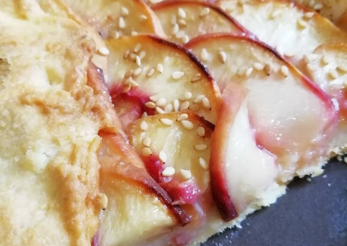 Tarte rustique à la pêche et sésame torréfié