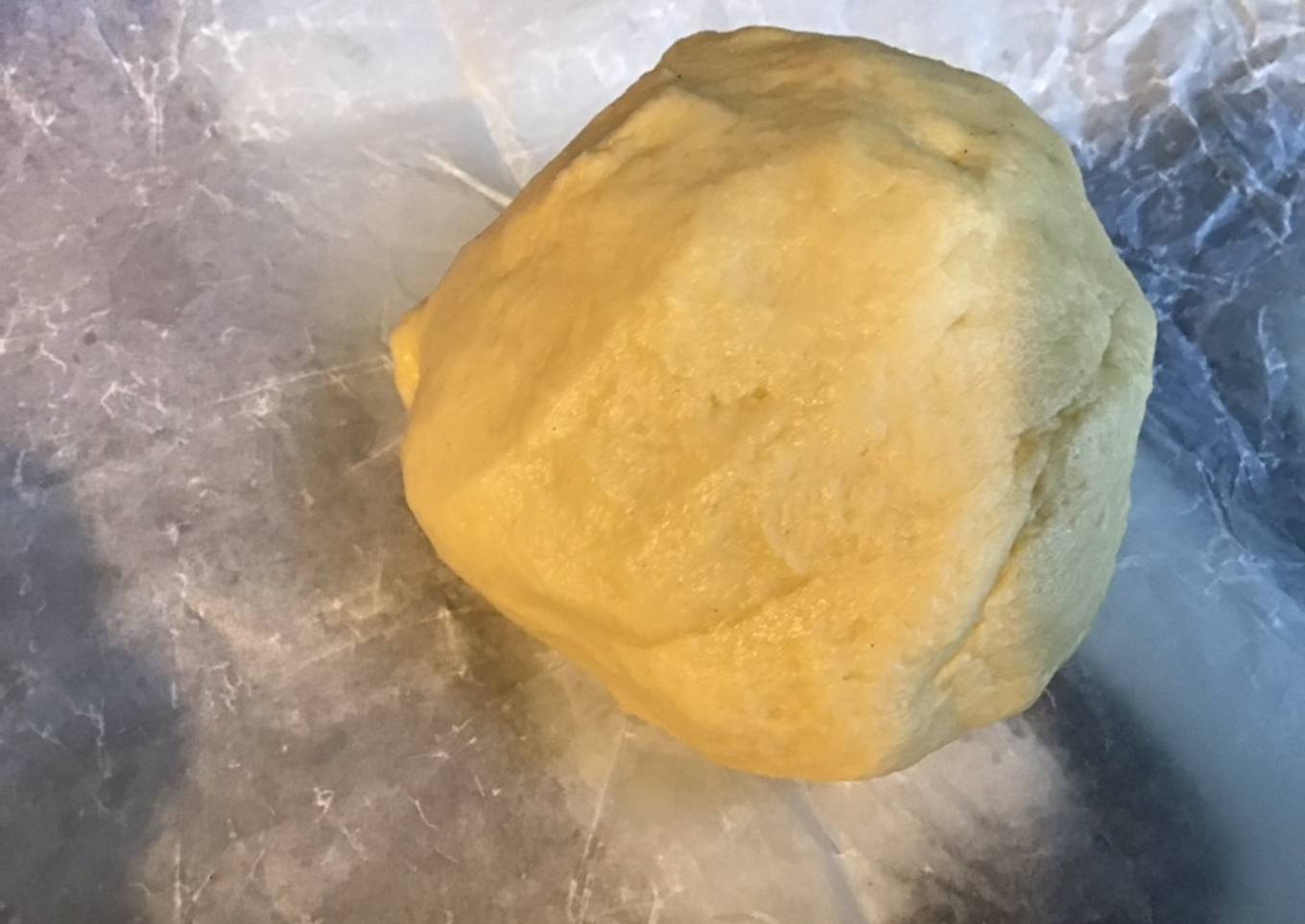 - Pétrir jusqu’à obtention d une pâte souple qui se décolle des bords faire une boule l envelopper de papier sulfurisé et mettre au réfrigérateur pendant 1h